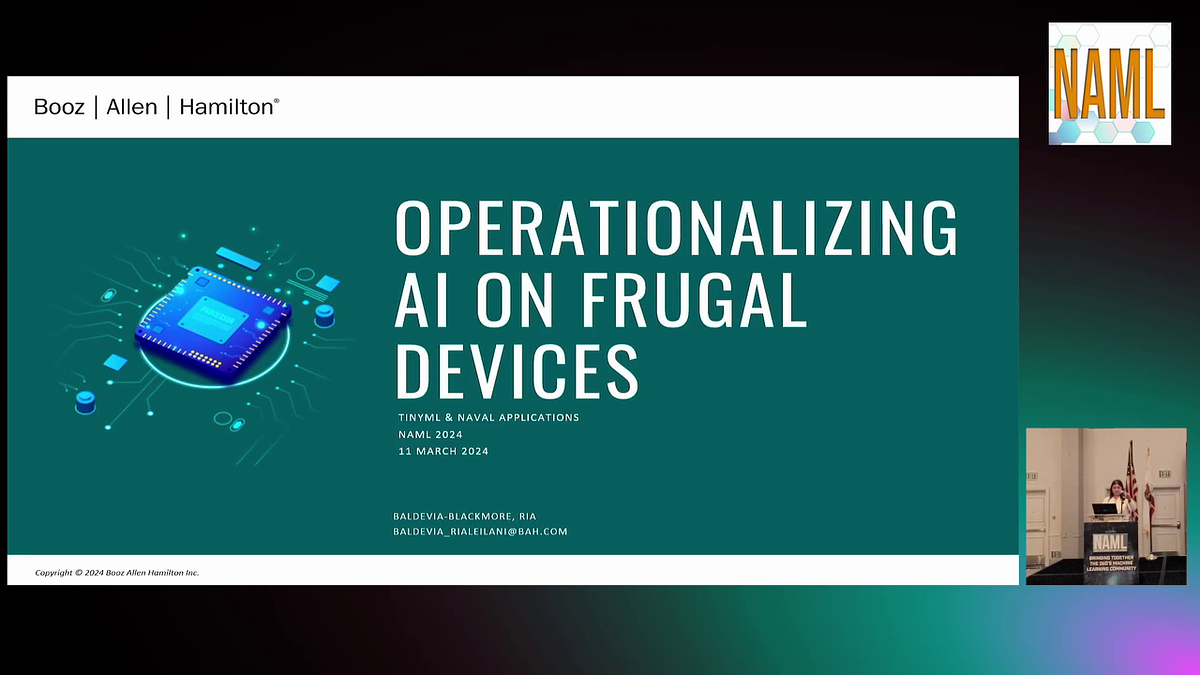 This presentation will showcase merging the frugality of ML-enabled boards and the ability to leverage compressed computer vision models to detect potential wear and tear in ship hardware/components. The ability to build and quantize machine learning models to deploy to a microcontroller can offer a light payload; therefore, enabling analysts and users to conduct machine learning inferencing in limited access areas. Moreover, these low-visibility and disposable hardware can become the preferred and ideal sensing mechanism in austere and unique operational environments.